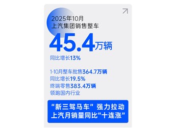 上汽集团1-10月累计销售364.7万辆,同比增长19.5%