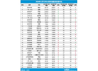 2026年1月TOP30轿车销量投诉量对应点评